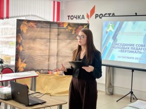 Спикерами заседания выступили методист Центра развития образования Мария Юрьевна Пермякова и руководитель Совета молодых педагогов «Вертикаль», советник директора по воспитанию и взаимодействию с детскими общественными объединениями школы №3 г. Киренска Вероника Юрьевна Добрынина.